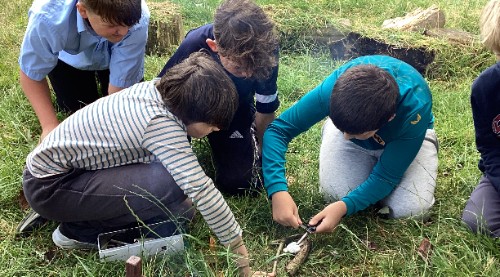 olClass 3 enjoyed their Forest School Session on Wednesday. They were tasked with building dens using items they were given like tarp and rope along with any items they could find. We ended up with some very inventive dens! Next job was to build the fire and toast some marshmallows.