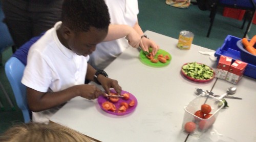 Class 3 have been busy cooking this week. Looking at a range of different food types and the nutrition they give us we created a picnic style lunch designed to fuel footballers before a match.