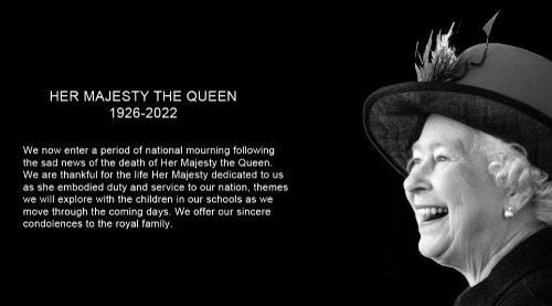 Today in school, there will be a special Collective Worship at 10am to mark the death of Queen Elizabeth II.