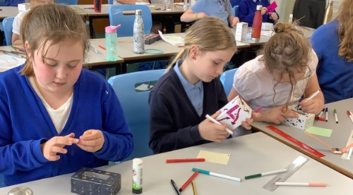 Class 3 have demonstrated their DT skills, measuring and hack-sawing the wooden dowels ready to make their moving toys. They are really beginning to take shape!