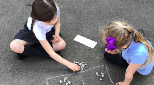 Class 2 have been exploring fractions this week so on Friday we headed outside to do our learning in the sunshine! Mrs Dunn's group concentrated on finding halves, whilst Mrs Hughes' group worked on non- unit fractions such as 2/3 of 21. It made fractions much more fun!