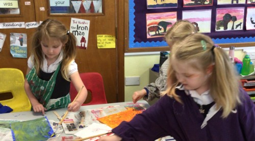 This week we have been getting arty! We looked at the artwork of Eric Carle and how he used painted paper to create textures in his collages. We created our own paper bank by painting the paper in lots of different ways. We planned our own Mr Man, trying to use simple shapes. Then we used our paper bank to collage our Mr Men.