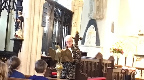 The Gospel of Luke (which was read by school governor Penny Geach) says that Jesus was met by Anna and Simeon. Simeon held the baby Jesus and called him a Light to the World.