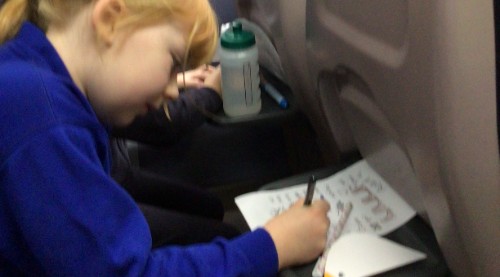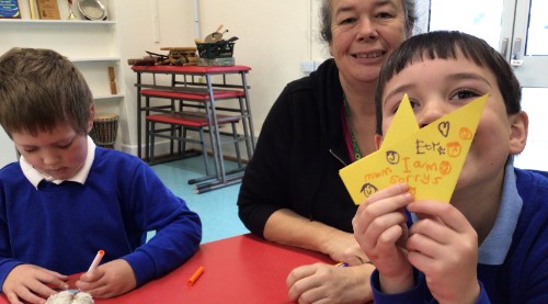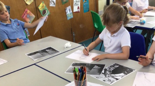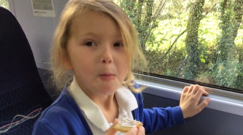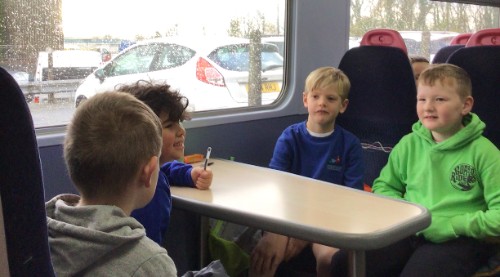 Year 3 had a writing train trip with poet Sally Crabb, between Liskeard and Looe. They had to brainstorm as words as they could, then turned the words into a 'word bird'. They they were given some words on sugar paper which they arranged in order to create a poem. They put these poems onto biscuits and then got to eat their words!