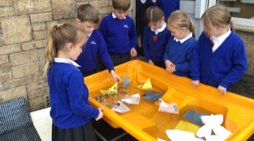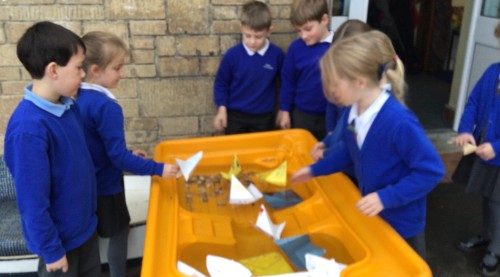 During RE, the children have been learning about the Jewish festival of Yom kippur. During which they remember the story of Jonah. They made their own boats as part of the re-telling of the story and set them sail in the water-tray outside.