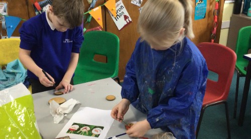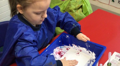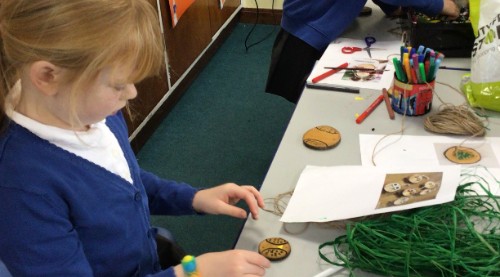 The children have also been making Christmas cards using a marbling technique and making wooden decorations. They used their own creativity to make them however they wanted.