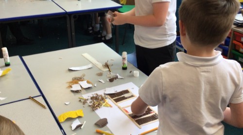 Class 2 designed and built medieval houses. They learnt about peasants (how they lived and what they wore).