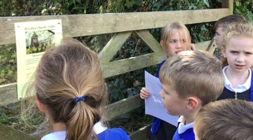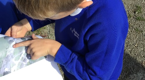 Class 2 developed their map working skills through following a map around the local area to find the grumpy face on the church.