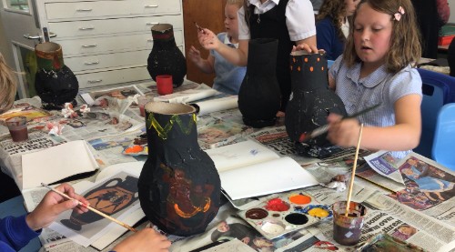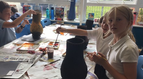 As part of our topic question, 'What did the Greeks do for us?' Class 3 made paper mache Greek vases, which depicted events from the Ancient Olympics. In history we learnt that vases were a source historians used to identify the events within the Olympics.