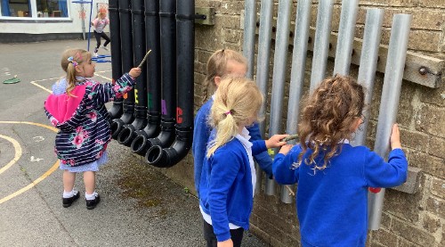The EYFS outside area has also changed to create a role play area based on the story of 'The Lighthouse Keepers Lunch'. The children have Mrs Grindle's cottage to play in, a boat to sail in and even a pulley system to deliver the lighthouse keepers lunch!