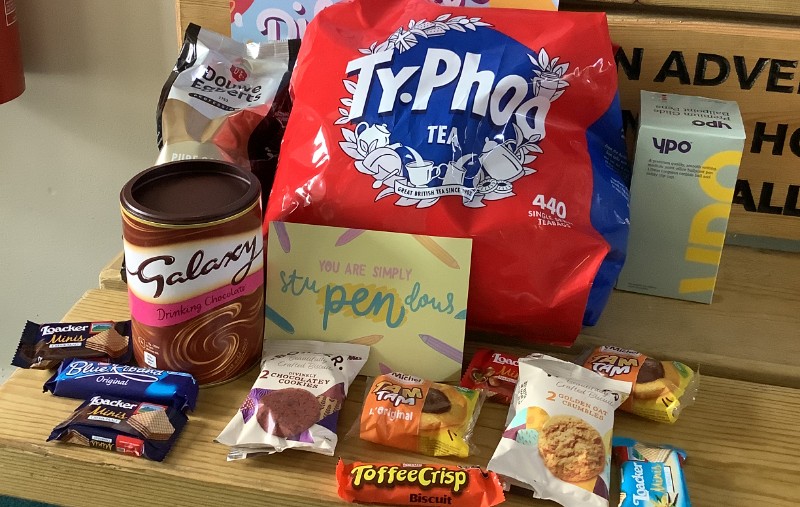 Thank you very much to Mrs Hooper who entered Duloe into a competition run by Twinkl to celebrate schools who went the extra mile during lockdown! The tea, coffee and treats have gone down very well in the staff room!