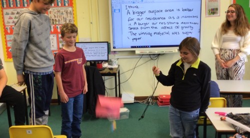 As part of their Science lessons learning about forces, Class 3 had a competition to create the most effective parachute. They tried a range of materials and surface area sizes to find the best design before carrying out their fair test.