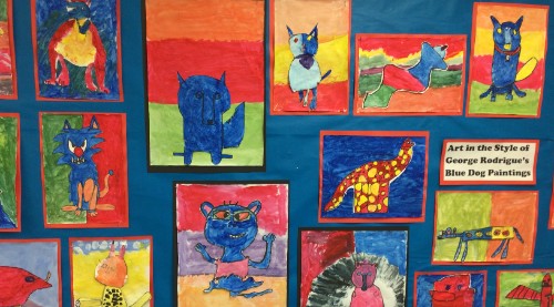 Class 2 have linked their learning about animals in Science, with their Art and Design lessons. Focusing on the contrasting colours used by artist, George Rodrigue's 'Blue Dog' painting, they created their own artwork in a similar style.