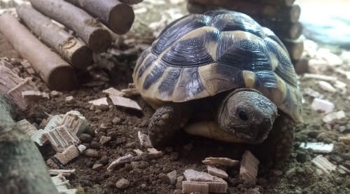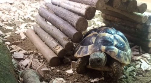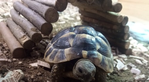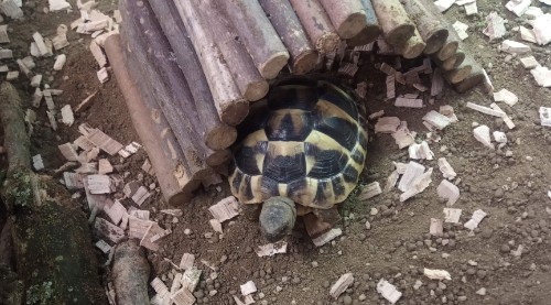 We also had a visit from a slightly older tortoise this week, which gave us an idea how much Turbo and Giggle will grow!