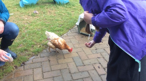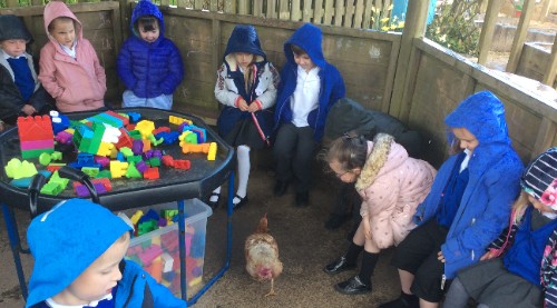 Class 1 also had a very special visit this week from one of Rachael's chickens! The children were fascinated by their visitor and enjoyed having their own 'Chicken Little' in school.