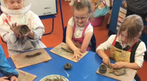 Class 1, as part of their fairy tale topic, have been learning the story of 'The Magic Porridge Pot'. In their design and technology lessons, they have been making pinch pots with clay.