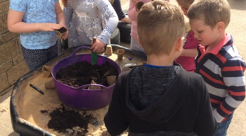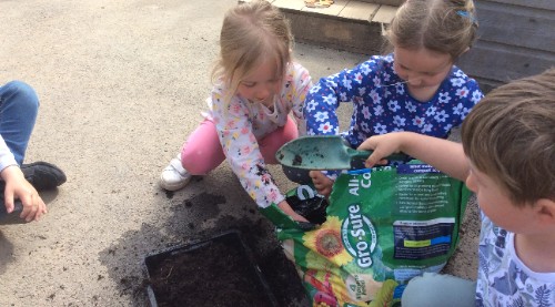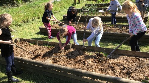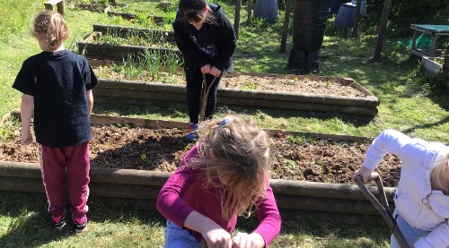The children have been making the most of the fine weather by getting into the school allotment, weeding the beds and planting potatoes and shallots. Hopefully, we will now get some rain to help everything grow.