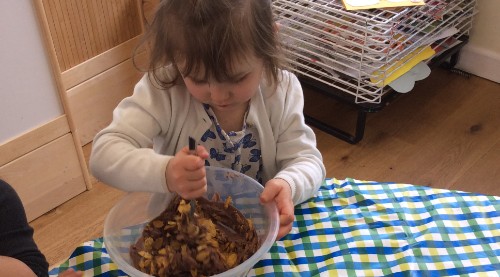 Nursery have been getting ready for Easter by doing some Easter themed cooking and going on an Easter egg hunt.