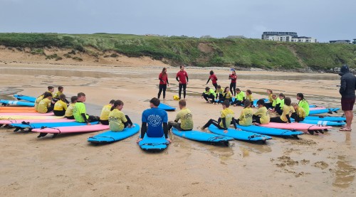 What a day Class 3 had on Friday. Although the weather was overcast with heavy rain at some points they didn't let that dampen their spirits. The sea conditions were perfect with a 4ft - 6ft swell and an inshore wind. Many of the children were able to stand up by the end of the lesson and all of them gained confidence in the water.