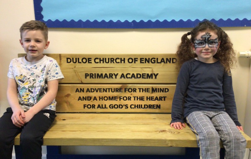 The children and staff at Duloe would like to say a huge thank you to our governor, Armand Toms, who has built this wonderful bench displaying our school name and vision. It is going to take pride of place within our school and we greatly appreciate Armand's time and skill in producing such a stunning item. We would also like to say thank you to Jewson's builder's merchants in Looe who kindly donated the wood. We are truly blessed.