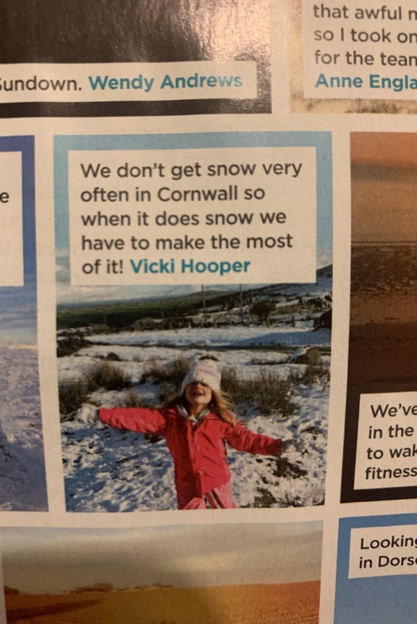 A huge well done to Indiee for making it into an issue of Country Walking magazine. Indiee and all the family are big fans of walking and this picture shows them out and about in the recent snow. I will have to get Indiee to give me a signed copy!