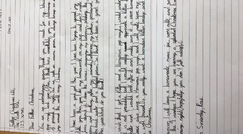 Class 3 have been very good boys and girls recently as they have been writing persuasive letters to Father Christmas. The children look at WAGOLL (what a good one looks like) examples of persusaive letters and then used our success criteria to make sure their letters were as persuasive as possible. The children did a fantastic job and their handwriting presentation for their final draft was excellent.