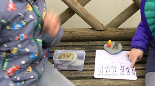 Class 3 have taken their learning of mathematics outside by completing a treasure hunt where they had to solve fractions of amounts.