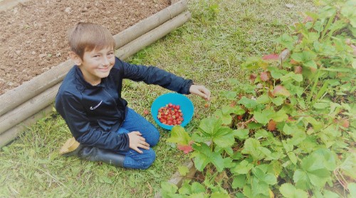 We are very lucky at Duloe to have our own school allotment, which we rent from the Duchy of Cornwall and is situated next to St Cuby's Church. Since we have been back at school after lockdown, we have been going to the allotment in small groups and harvesting rhubarb, strawberries, apples and a range of other vegetables and fruits.