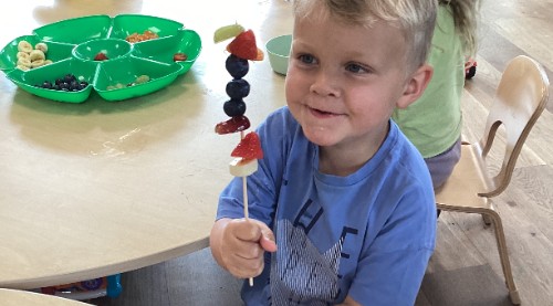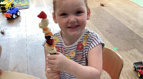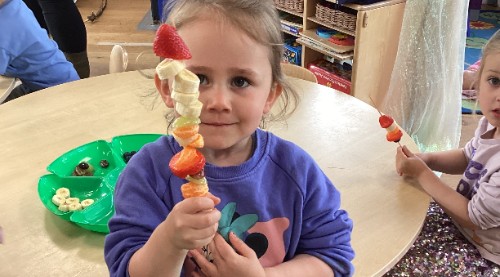 This week the children made their own fruit kebabs, they explored different fruits, learnt about patterns and even practiced their counting and fine motor skills while making their own kebab creations.