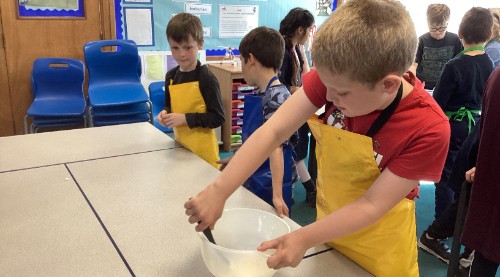 Class 2 have been exploring where and how a variety of ingredients are grown. They then cooked with some of the ingredients they had been learning about and made these delicious honey and cinnamon biscuits. Recipe attached for anyone who would like to try.