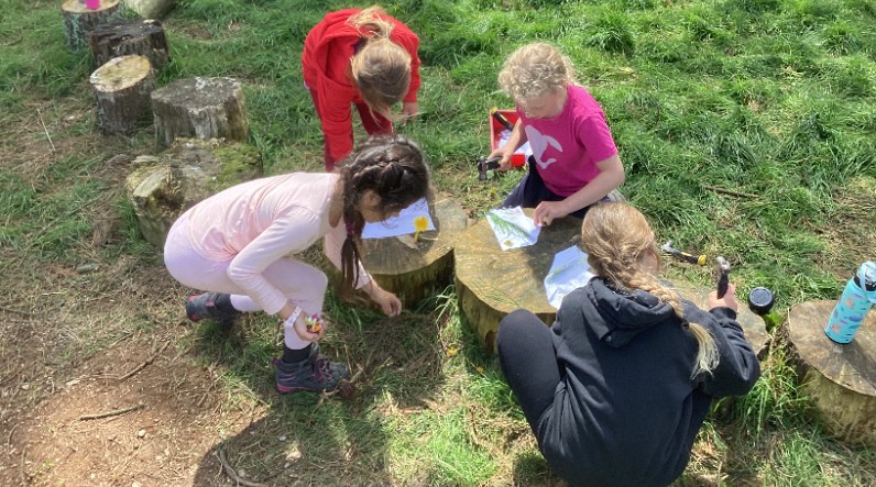 This half-term Class 2 is having Forest School sessions with Mrs Edwards on a Thursday afternoon (Class 3 will have Forest School during the next half-term). This week the children looked at flower and leaf printing using muslin cloth and a hammer.
