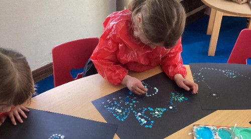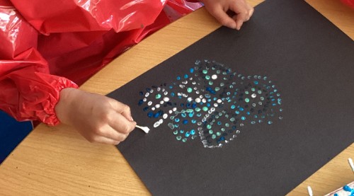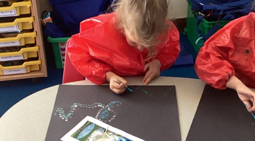 For art this half term Class 1 have been exploring different marks through printing using a range of objects and techniques.