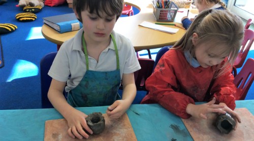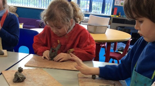 Class 1 have been developing their clay skills and techniques before creating their own farm animal sculptures. They were experimenting with different ways of changing the shape (making pinch pots) then they looked at different textures for farm animals and made clay tiles which showed these. Then tried out different ways to join the clay so that it was strong when made in to a sculpture
