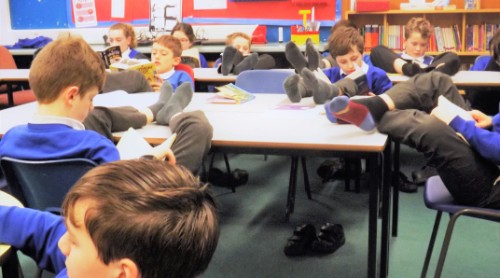 Class 3 have decided to embrace 'Feet-up Friday Reading'. To help encourage a love of reading, Class 3 have decided to start their Friday mornings by kicking off their shoes, putting their feet on the table and reading a good book. What a lovely way to start the day!