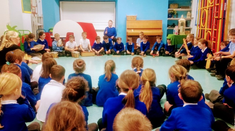 As part of Class 3's topic, 'Why save the rain-forest?' they have been learning songs related to indigenous rain-forest tribes and created their own composition based on the sounds of the rain-forest. Class 3 then presented their composition to the whole of the school during Collective Worship.
