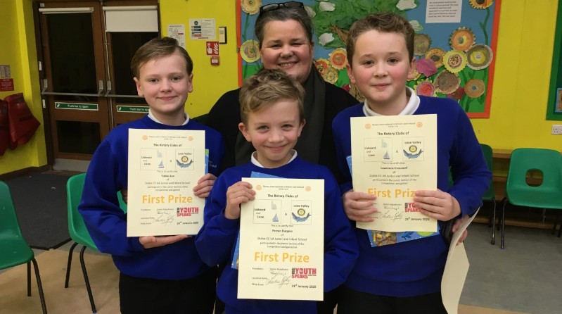 The boys are pictured with Mandy Clarke, who did a fantastic job in preparing the children for the competition.