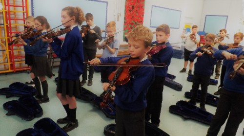 Every Friday children from Year 3, 4, 5 and 6 receive violin lessons led by a music teacher from the Cornwall Music Service. The children are making wonderful progress with their playing. They are learning how to read music as well as play their instruments. We certainly have some classical stars of the future!