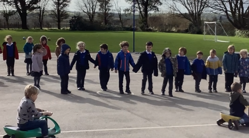 safety. In the playground they practised ‘stop, look, listen and think’ with