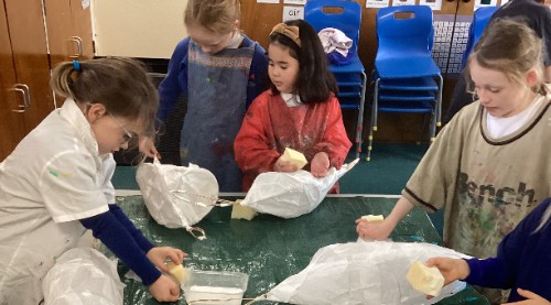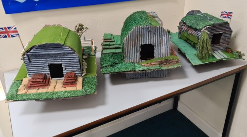 In DT, Class 3 have been exploring how the Anderson shelter was used by the people of Britain during WW2 as a way of protecting themselves from German bombings. Looking at a range of sources and photographs from the time, they worked in pairs to design their own model Anderson shelter. In their designs they all thought carefully about the shape, scale and proportion of the shelter in relation to how they looked at the time. The inside of each shelter design was also considered with benches, bunk beds and posters added. It made the children all consider what they would bring to an Anderson shelter if they had to be in one for several hours.