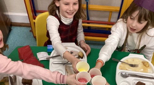 Christmas dinner was enjoyed by all, we had crackers and squash donated by the PTFA and Christmas music to sing and dance along to. Thank you to Mrs Crago and her elf for cooking us another lovely Christmas dinner.