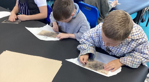 Class 2 and Class 3 spent the afternoon exploring art through different mediums. The children were tasked to make a nature inspired picture using the materials available to them.We had leaf imprinting, tree sketching and coastal scenes.