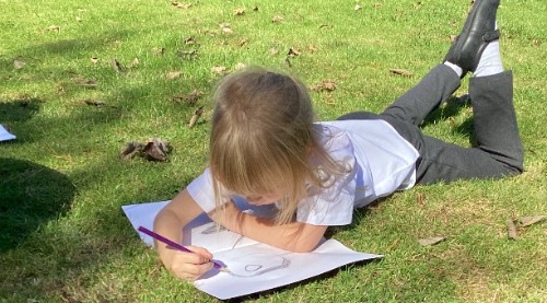 What a wonderful art afternoon Class One had in the sunshine with a visit from local artist Eleanor Russell-Hsieh. The children focused on the techniques of sketching with Ellie teaching the skills of hatching, blending and finding light and shade. Our budding artists loved exploring the range of sketch pencils and the effects the different grades had on their mark making. A highlight of the afternoon was the observational drawings which took place outside on our beautiful field.