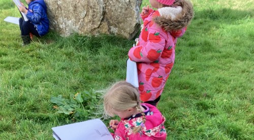 This morning Class 1 walked over to the ancient site of Duloe Stone Circle. Following our art lesson from Ellie Russell – Hsieh we sketched the monument into our sketch books and looked in wonder at the stones. We are so excited to begin our history work based on our enquiry question ‘How has Duloe changed since it’s stone circle was created?’